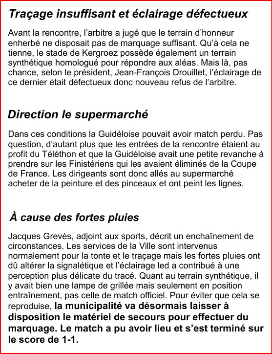 L' histoire retiendra pour le premier match officiel sur le terrain d'honneur de Kergroise